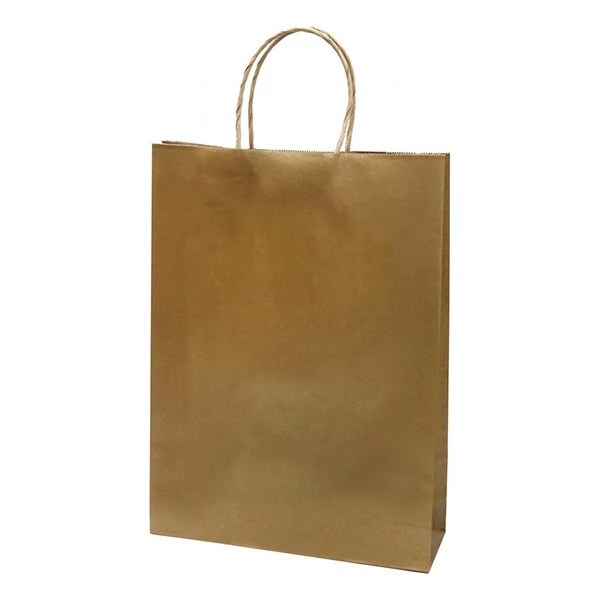 Ajándéktasak, L 26x35x8 cm méretben, arany színben, sodort füles.