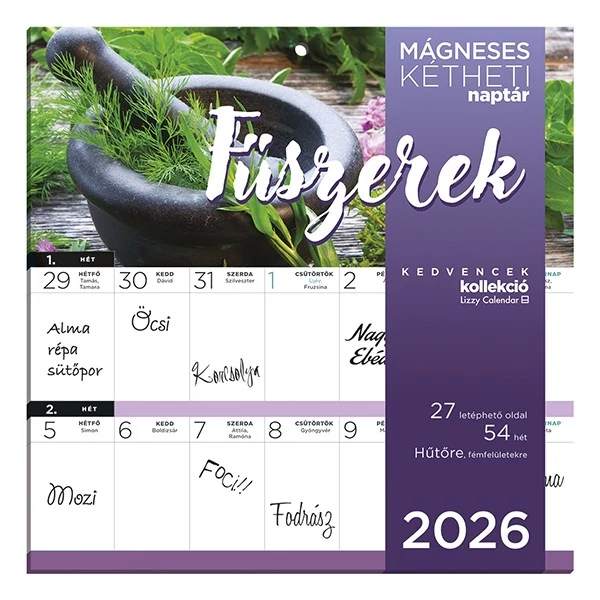 Falinaptár mágneses LIZZY CARD 220x220mm 2 hetes Fűszernövények 2026.