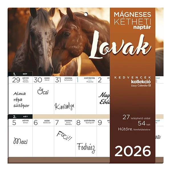 Falinaptár mágneses LIZZY CARD 220x220mm 2 hetes Lovak 2026.