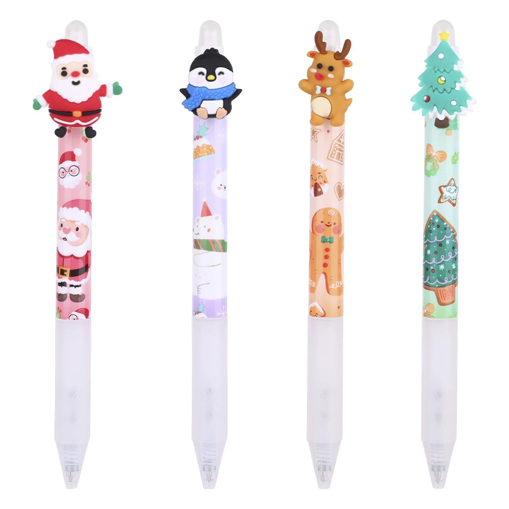 Dizájn nyomógombos golyóstoll, színes karácsonyi mintákkal.