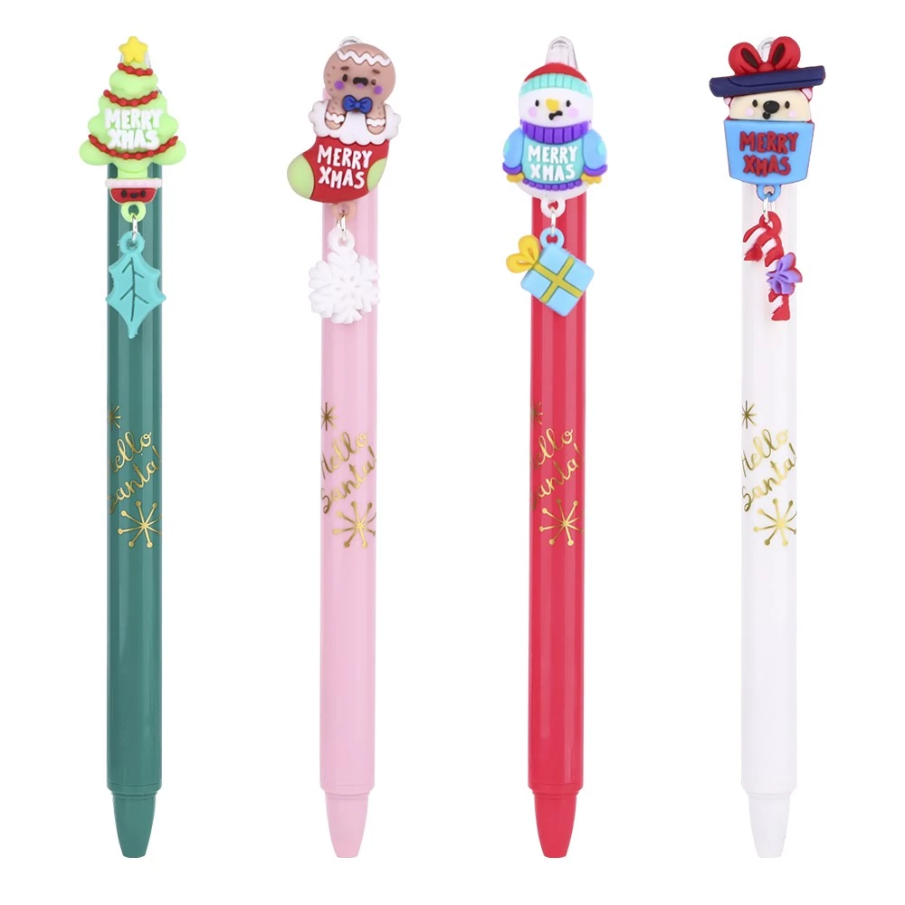 Dizájn nyomógombos golyóstoll, színes karácsonyi mintákkal.