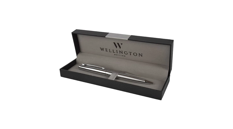 Pérmium minőségű Wellington golyóstoll, ezüst színben, díszdobozban.