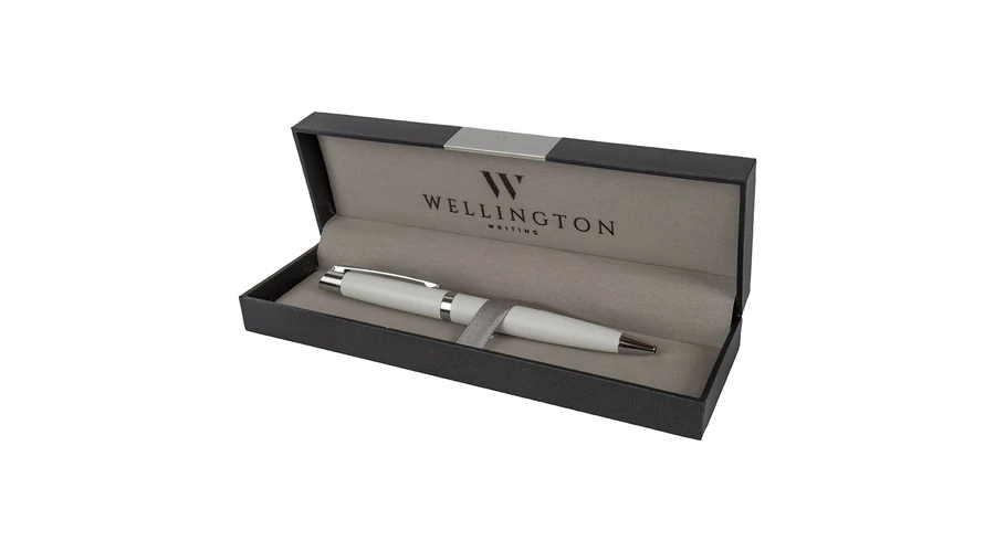 Pérmium minőségű Wellington golyóstoll, fehér színben, díszdobozban.