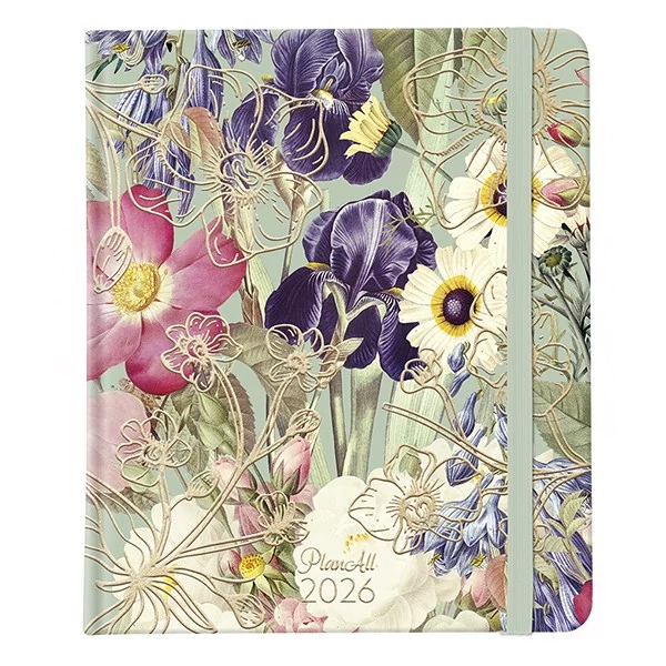 B5 méretű, könyvkötött, keményfedeles, gumi rögzítős heti tervezőnaptár.