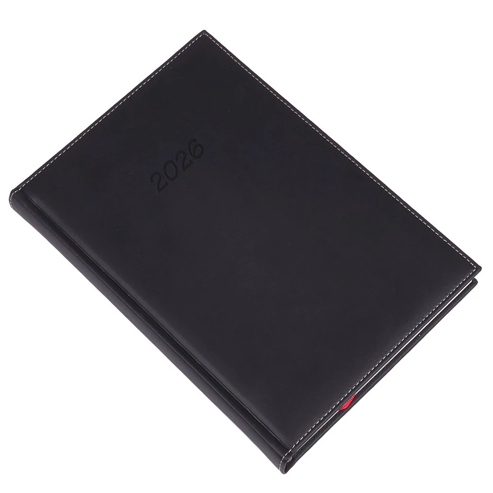 Sárga papíros, cérnafűzött, B/5 napi beosztású, 400 oldalas, sarokperforált, jelzőszalagot és térképet tartalmaz.