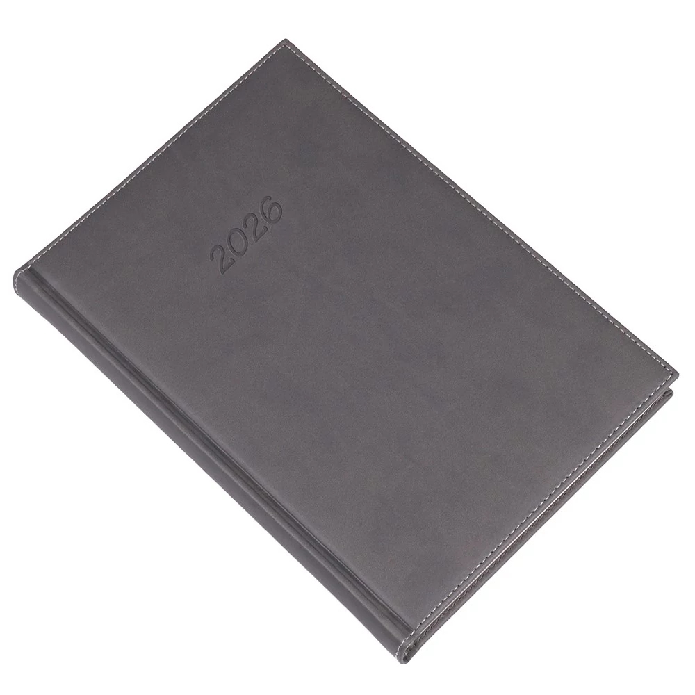 Sárga papíros, cérnafűzött, B/5 napi beosztású, 400 oldalas, sarokperforált, jelzőszalagot és térképet tartalmaz.