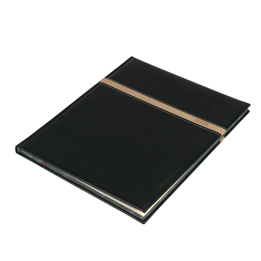 Sárga papíros, cérnafűzött, A/4 heti beosztású, 144 oldalas, sarokperforált, jelzőszalagot és térképet tartalmaz.