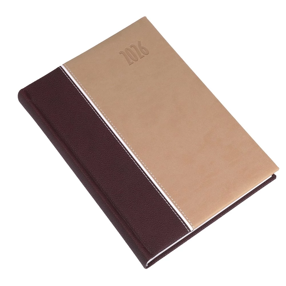 Fehér papíros, cérnafűzött, A/5 napi beosztású, 352 oldalas, sarokperforált, jelzőszalagot tartalmaz.