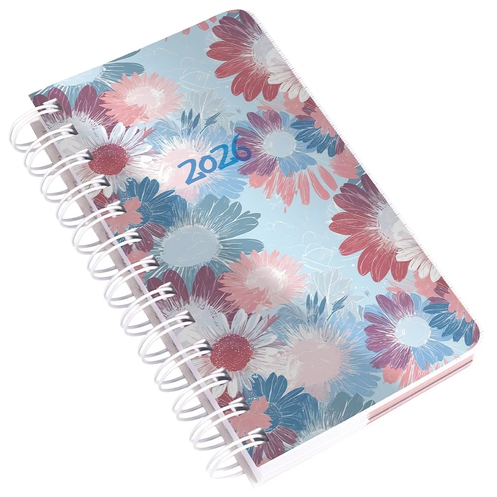 Határidőnapló REALSYSTEM SP5 spirál A/6 napi fehér lapos virágok 2026.