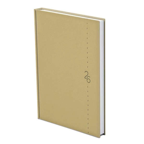 Matt, bőrhatású, hőre színeződő műbőr bevonóval, függőleges dísztűzéssel készült, fehér tömbös naptár, jelzőszalaggal és sarokperforációval (kivéve zsebnaptár). Vaknyomással és lézergravírozással emblémázható.