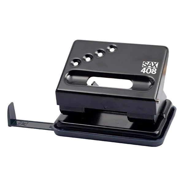 Irodai, asztali, színes fémvázas lyukasztó, távtartóval, papírhulladék tartóval ellátva. Lyukasztási kapacitással: 30 lap. Lyuktávolság: 80 mm. Lyukátmérő: 5,5 mm.