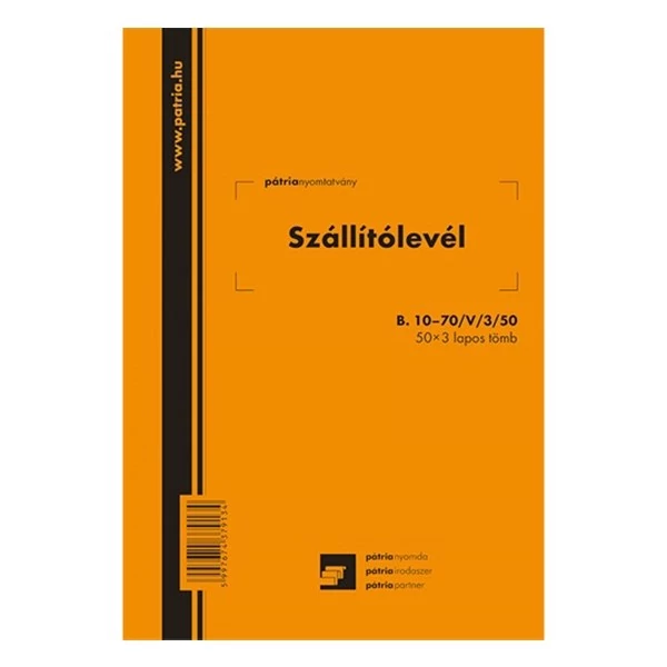 A/5 méretű 3 példányos, álló kivitelű, minőségi belívvel és karton fedlappal rendelkező nyomtatvány.