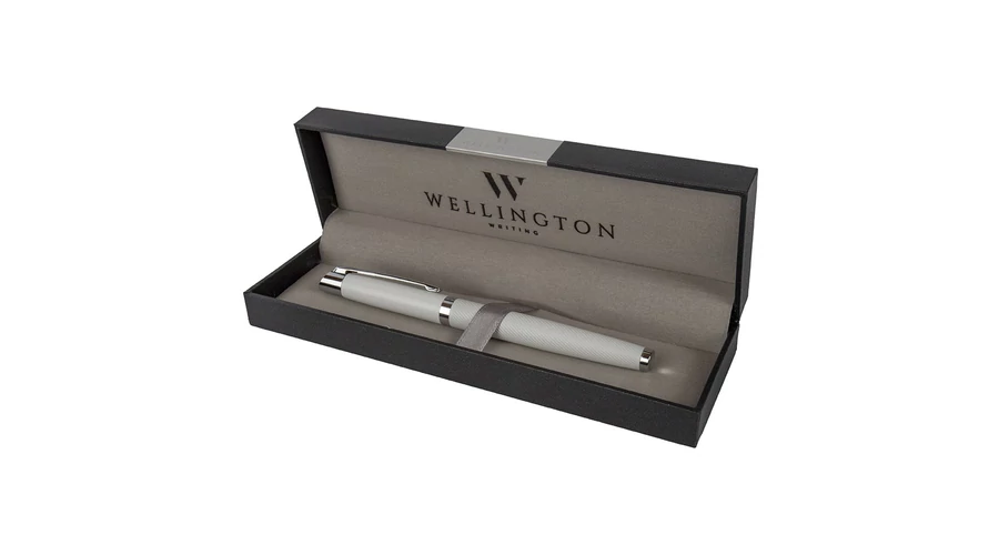 Pérmium minőségű Wellington rollertoll fehér színben, díszdobozban.