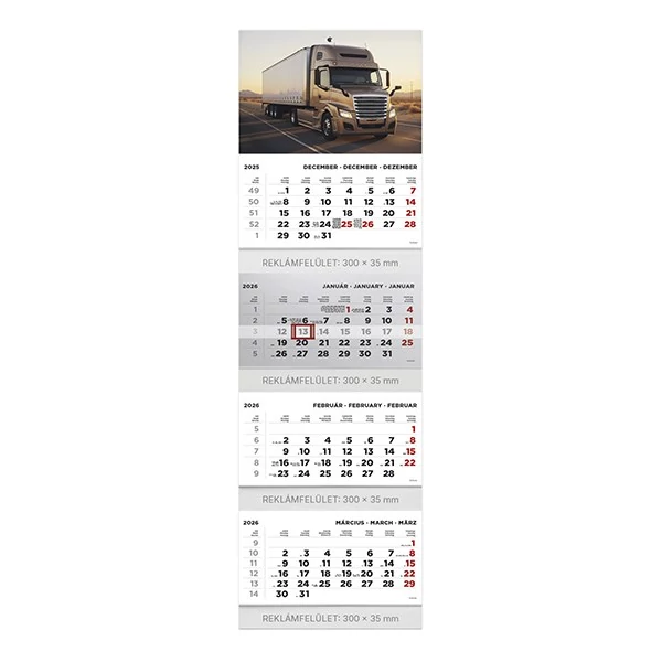 Speditőr naptár TOPTIMER T073 4 tömbös 4 havi Kamion 2026.