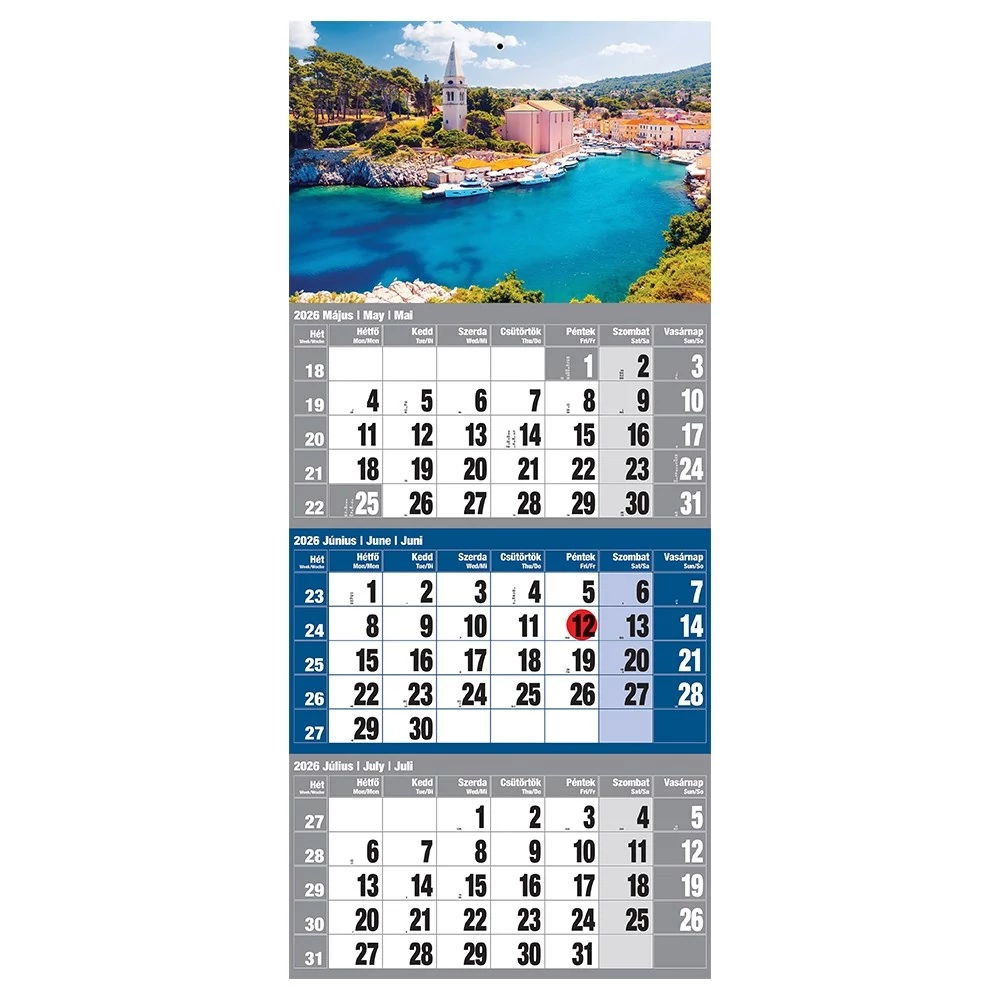 Speditőr naptár REALSYSTEM 1 tömbös 3 havi kék Európa 2026.