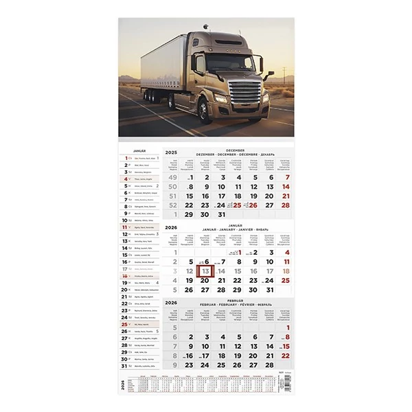 Speditőr naptár TOPTIMER T077 1 tömbös 3 havi névnapokkal Kamion 2026.