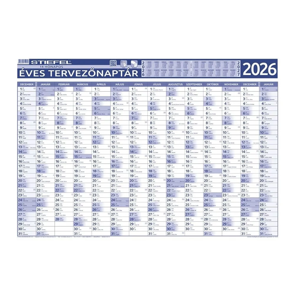 Ideális éves tervezőnaptár, egyik oldalon 14 hónapos beosztással. Praktikus, hogy 14 hónapra tervezhet, a naptárnak ezt az oldalát 2025. december 1-től, 2027. január 31-ig használhatja. Kétoldalas kialakításának köszönhetően a tervezőnaptár másik oldalán egy éves projektnaptár található. A projektnaptár segítségével 2026 naptári évet tervezheti meg. A naptárhoz tartozik egy kék színű filctoll, amivel a naptárra írhat, de ha el is rontotta a bejegyzést, letörölhető és utána újra írható. Mérete: 70 x 100 cm